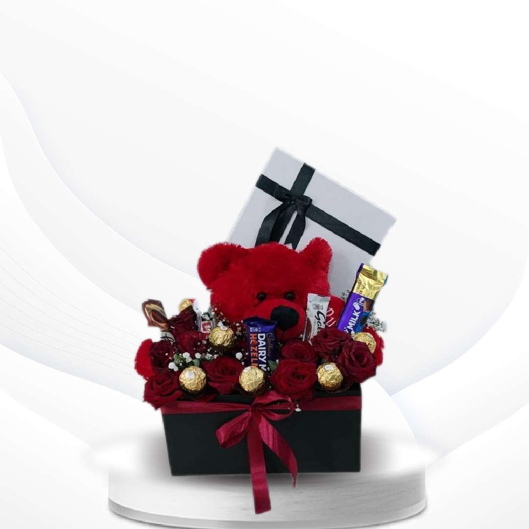A box with teddy bear gifts with delicious chocolates😍😍😍
