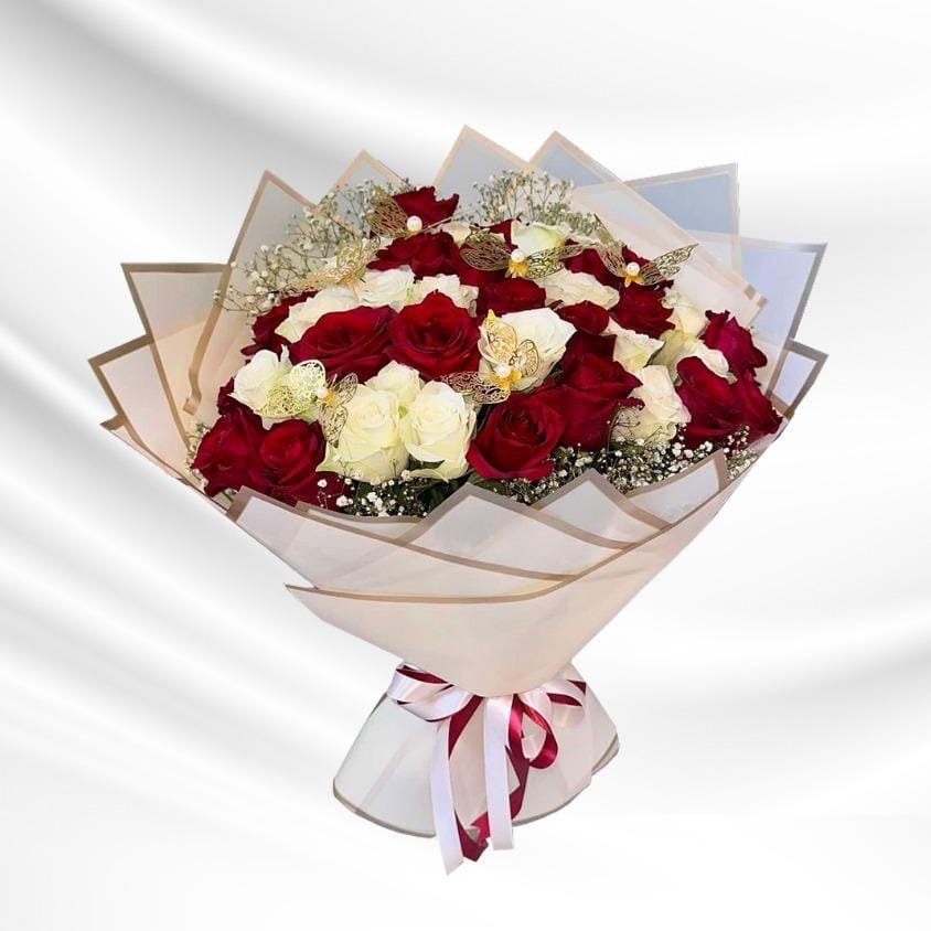 40 Imported red and white roses